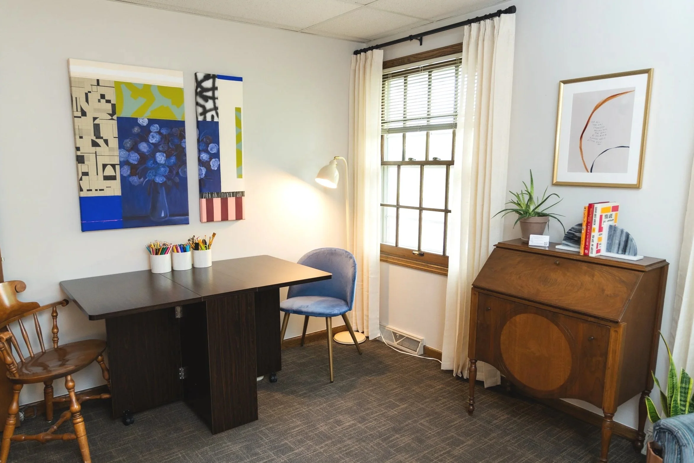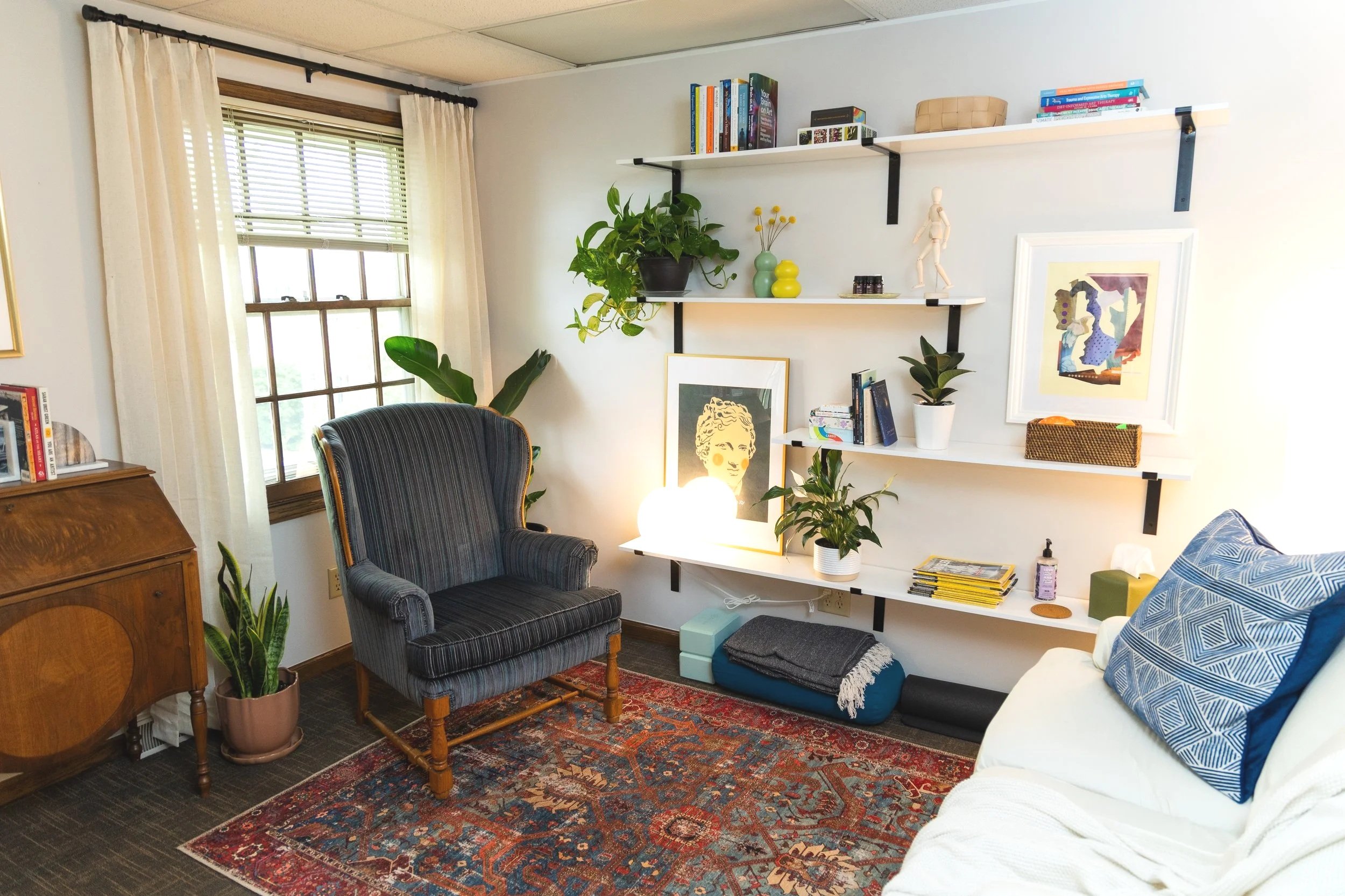Our therapists are all dually licensed art therapists and professional counselors. As a whole we are client-centered and utilize trauma-informed techniques integrating our Art Therapy, EMDR, Internal Family Systems, and Somatic training. We also often utilize psychoeducation, CBT, DBT, ACT, and mindfulness tools & techniques to develop client agency and self-efficacy. To learn more about each of our individual approaches visit Our Team page.